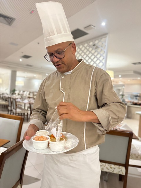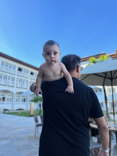 Esse cuidado ganha ainda mais relevância quando chega à alimentação. O principal diferencial, no nosso caso, esteve na nutrição: uma equipe ficou à disposição durante toda a estadia, com contato direto via WhatsApp, organizando as refeições de Antônio exatamente como ele está acostumado: sem sal, com preparo adequado e sempre nos horários combinados. Na prática, isso simplifica completamente a viagem. Não foi necessário levar comida congelada, armazenar ou administrar idas à cozinha, uma logística que, para quem tem bebê, costuma ser desgastante.