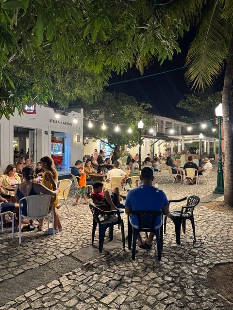 À noite, a pequena vila da região foi a nossa escolha, porque oferece uma programação com música ao vivo, criando um ambiente descontraído para encerrar o dia sem grandes deslocamentos pela Linha Verde (região em que a Costa do Sauípe está localizada).