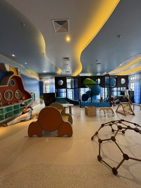 Meu filho Antônio viveu uma experiência acolhedora desde a chegada. O quarto amplo, com cama generosa e lençol de toque macio, já estava preparado com berço e banheira, o tipo de antecipação que faz diferença quando se está com bebê. Foi ali também que conseguimos manter seus horários de sono sem grandes adaptações, mesmo com a energia mais intensa do hotel ao longo do dia.