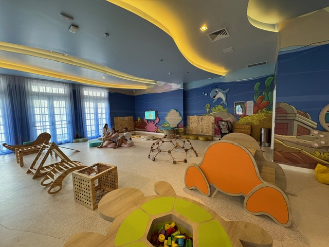Com essa base resolvida, os momentos de lazer fluem com mais leveza. A piscina infantil cumpre bem o seu papel: separada das demais, com profundidade bem rasa, oferece segurança e tranquilidade. A brinquedoteca também entra como apoio importante e, embora não tenha piso de tatame — ponto que deixo como sugestão —, reúne boas opções de entretenimento para essa fase, ajudando a variar a rotina entre descanso e estímulo.